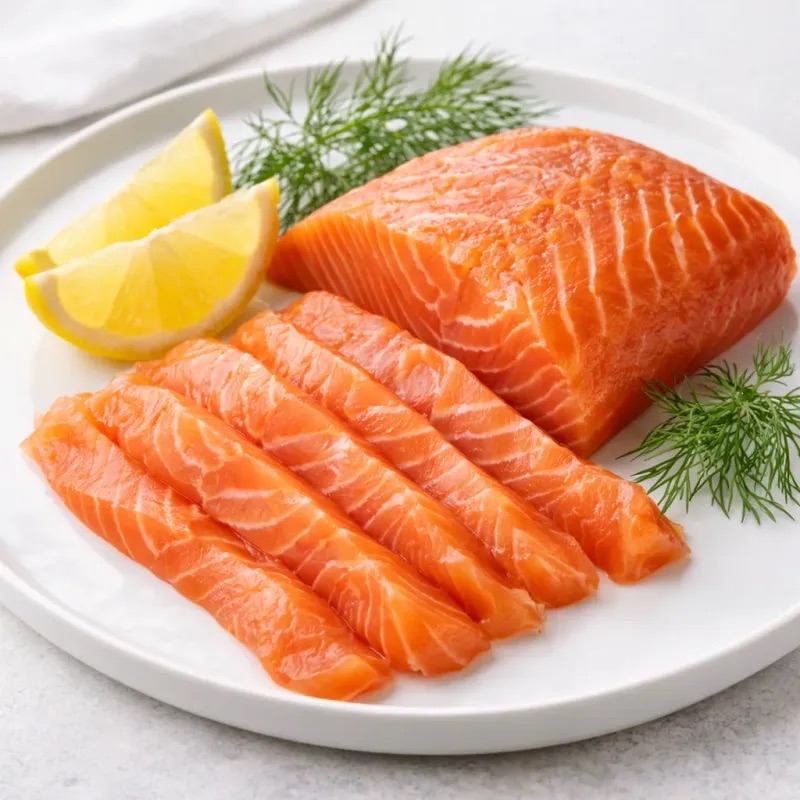 Łosoś jest źródłem kwasów tłuszczowych omega-3. Niektóre badania badały omega-3 w kontekście zdrowia sercowo-naczyniowego;[6] wyniki są różne, a kolejne badania trwają. Łosoś dostarcza również białko i inne składniki odżywcze według danych USDA.[5] To tylko informacja; skonsultuj się z lekarzem.